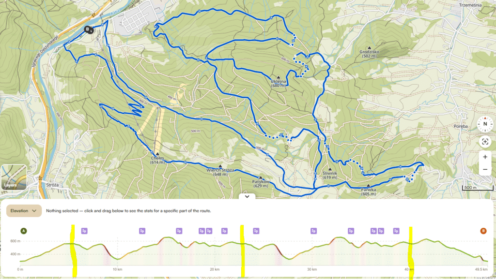 Nie wiem dokładnie jaki był pierwotny projekt trasy w Myślenicach. Zawody miały się odbyć w zupełnie innym terminie, ale stało się tak, że podkrakowska miejscowość wygrała finał DareToBe sezonu 2025. Na pewno będzie malowniczo. Jesień wjeżdża w tym roku wyjątkowo śmiało. Zapewne nie zabraknie też błota, choć analizując trasę, powinna być odporna na trudny warun.